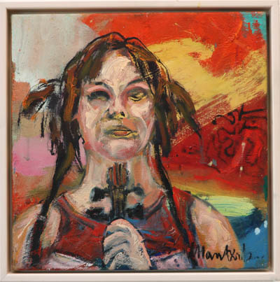 Nr: 1533 Materiale: Acryl på lærred Titel: Violin II Rammemålet: Højde: 30 cm Bredde: 30 cm